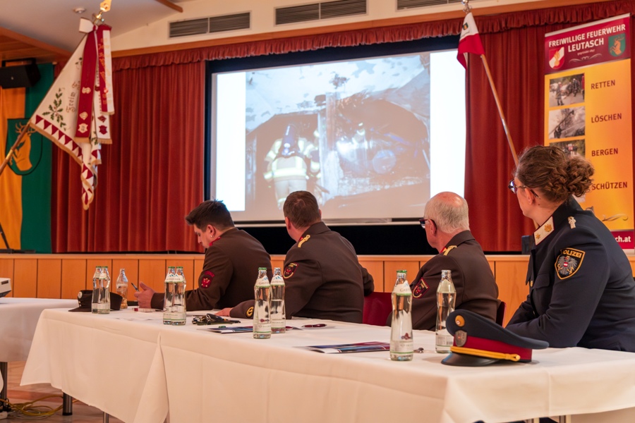 Zu Beginn der Grußworte waren sich Bürgermeister HFM Jorgo Chrysochoidis und Bezirkskommandant-Stellvertreter BR Martin Hellbert einig: „Ihr gebt 117% für die Bevölkerung der Gemeinde Leutasch!“ (Anm.: Gesamttätigkeiten auf Tage gerechnet). Die Vertreter der weiteren Blaulichtorganisationen dankten für die – gewohnt – gute Zusammenarbeit.