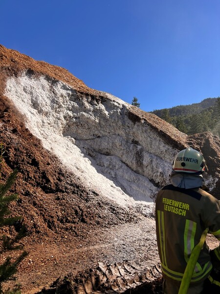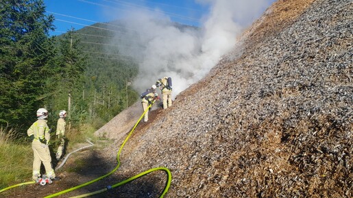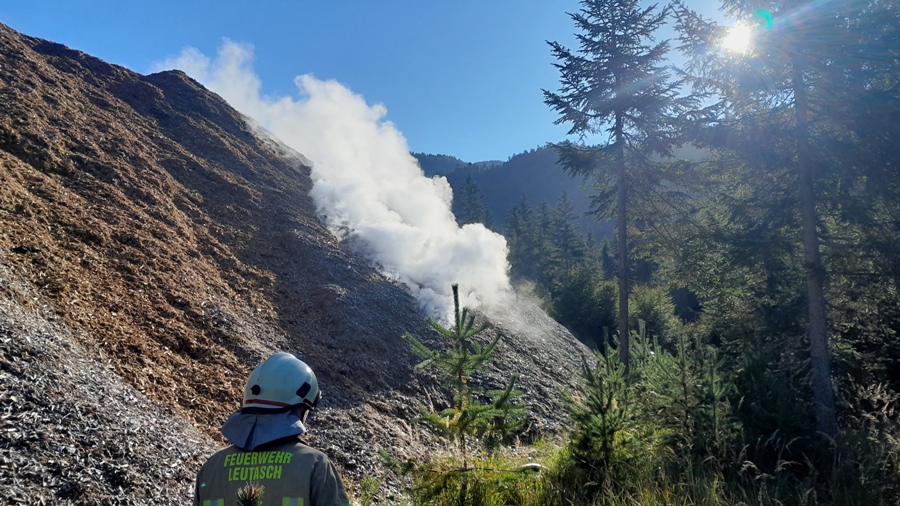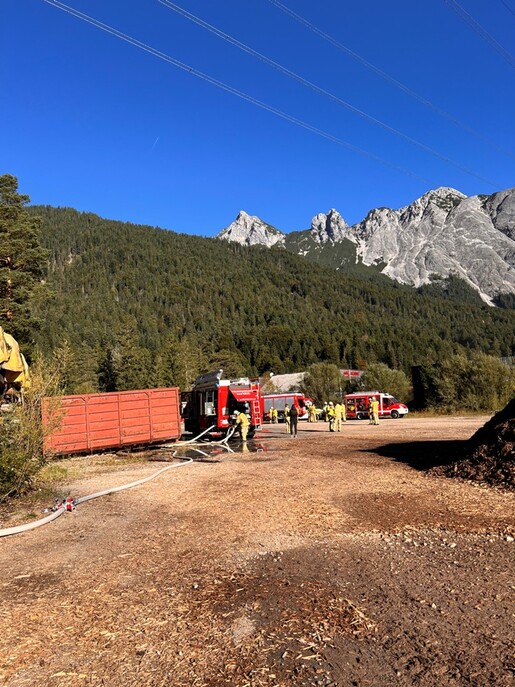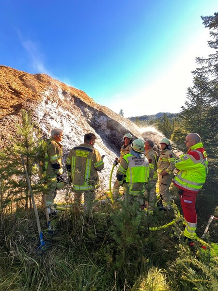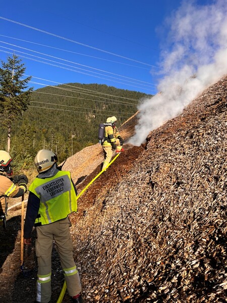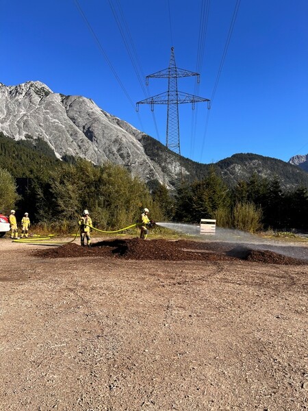 Einen langwierigen Löscheinsatz hatten die freiwilligen Feuerwehren am Donnerstag, den 18. September 2025 in Leutasch zu bewältigen. Kurz vor 08:30 Uhr erging die Alarmierung aufgrund eines brennenden Hackschnitzelhaufens.