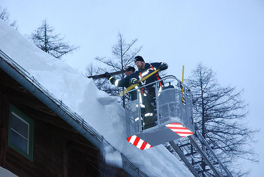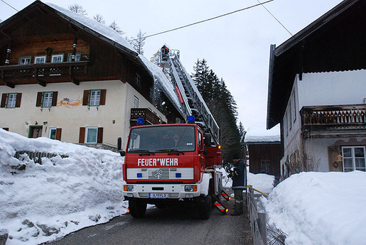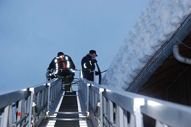 Ein weiteres Problem in Folge des strengen Winters machte sich am Dienstag, den 06. März 2012 bemerkbar. Bisher galt es einsturzgefährdete Objekte von den Schneemassen zu befreien - nun musste aufgrund von abrutschendem Schnee eingegriffen werden. Eine besorgte Bewohnerin setzte das Kommando darüber in Kenntnis, dass Schnee vom Vordach ihres Wohnhauses abrutschen könnte. Nach Beurteilung der Lage erfolgte um 16:59 Uhr die Alarmierung der Drehleiterschleife: